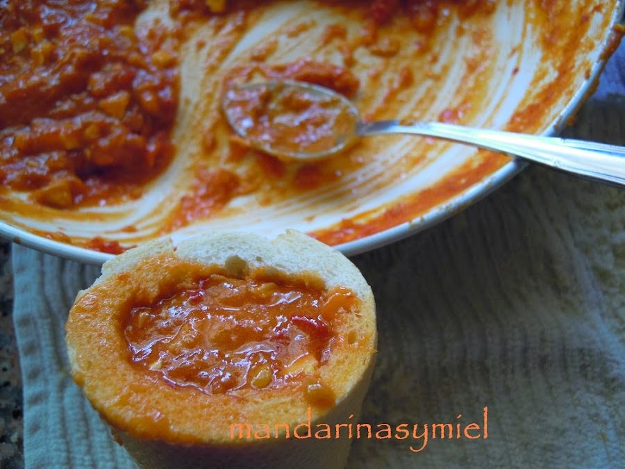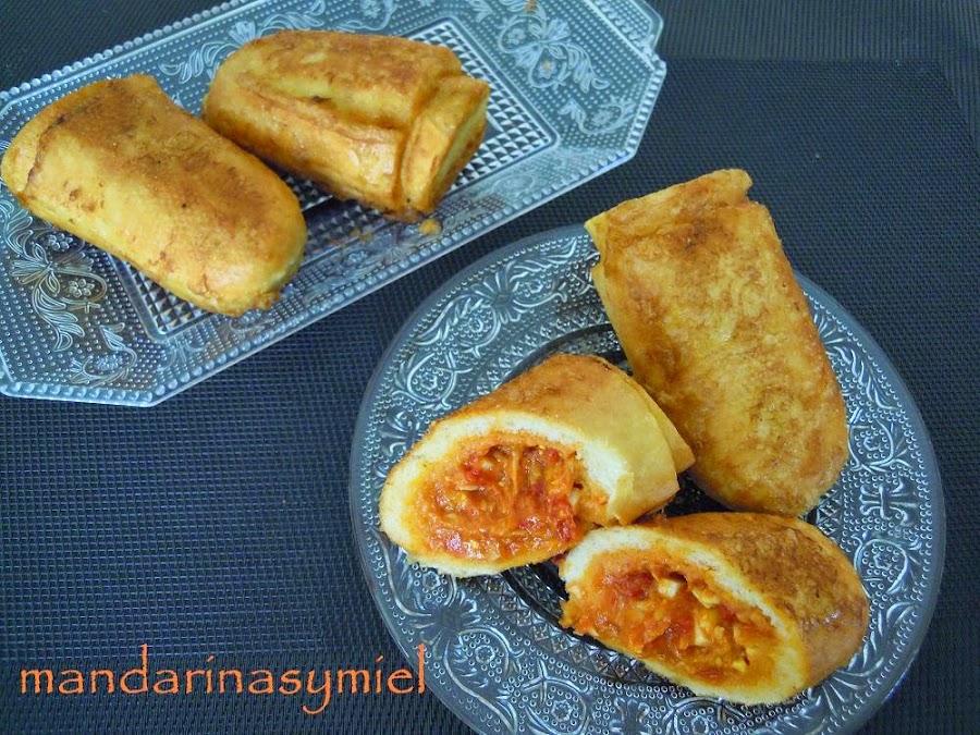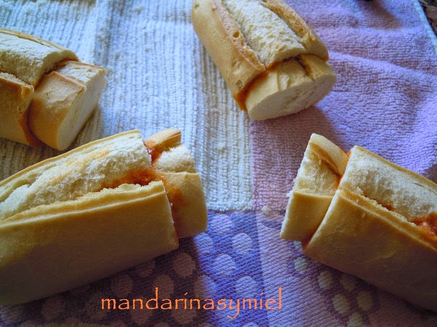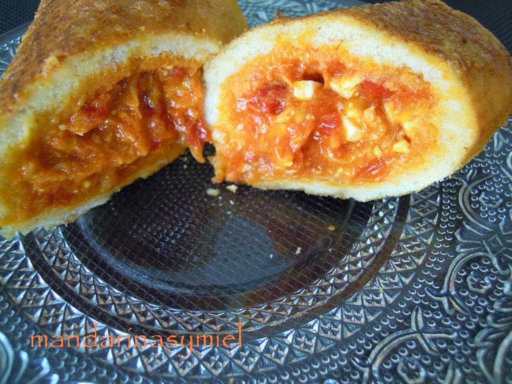 Son unos panecillos que se rellenan de una especie de pisto, hecho con tomate, pimiento morrón, atún, huevo duro y piñones. Esta es otra receta de esas que se heredan de las madre y abuelas.