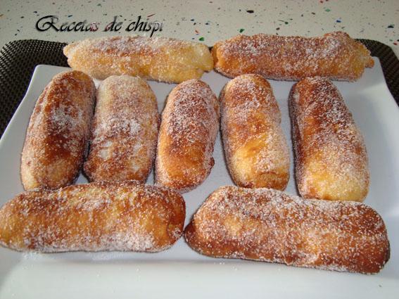 A medida que se van friendo se pone sobre papel absorvente para quitar el exceso de aceite y luego lo pasamos por azúcar blanca, dejar enfriar.