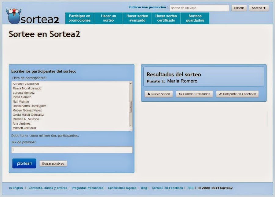 El SORTEO se realizó anoche, día 2 de junio de 2014 a las 23:59 hora de España, a traves de SORTEA 2.