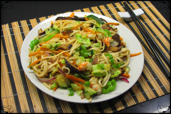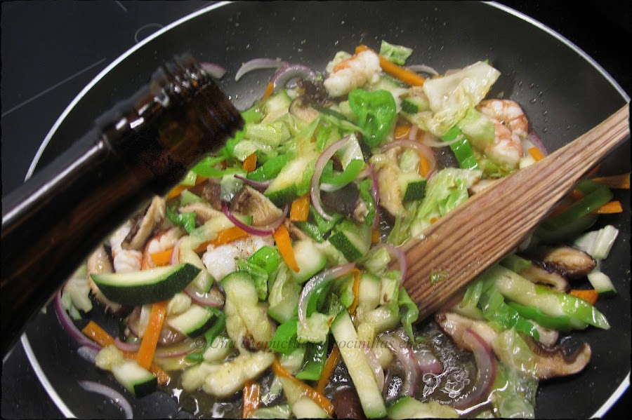 En mi receta los he salteado con unas verduras, setas shiitake y langostinos, vamos al lio...