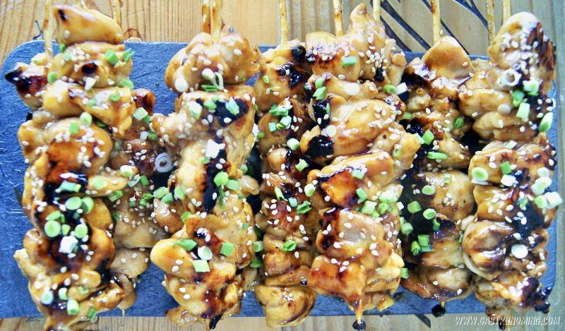Tsukune Brocheta de carne picada de pollo o de pequeñas albóndigas.