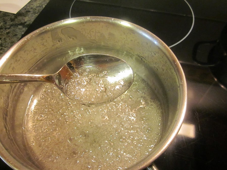 Ponemos un cazo con el agua y el azúcar hasta conseguir un almibar a punto de bola, esto se hace, cociendo el conjunto sin dejar de remover, durante aprx. 10 minutos , que el agua se vaya evaporando y nos quede un almibar espeso.