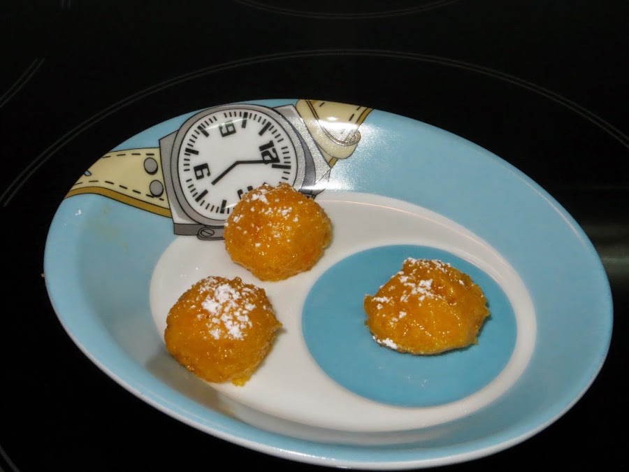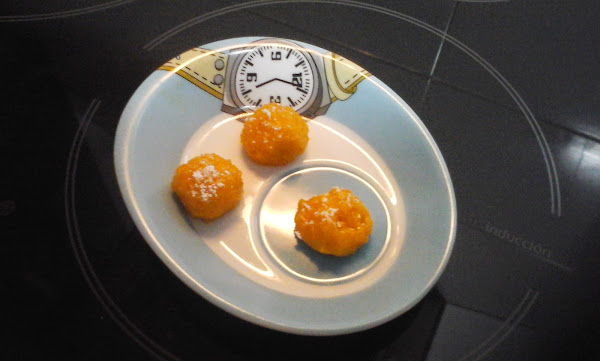 Echar la mezcla en un plato y dejar enfriar. Trabajar la masa y hacer bolitas con las manos, las rebozamos con azúcar glass y las colocamos en una cápsula de papel para servir a nuestros invitados, contad con un par de yemas por persona, ya que puede resultar un dulce un poco pesado.