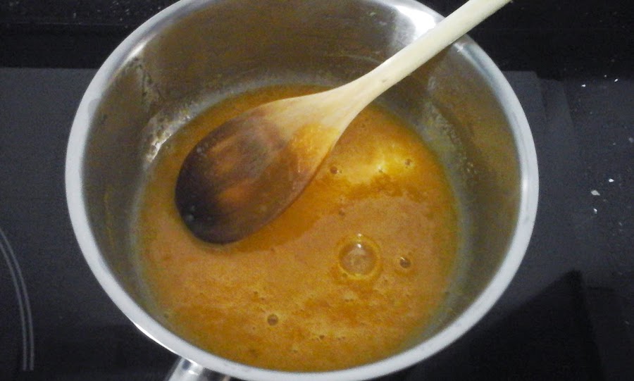 Batir las yemas y añadirlas al almíbar. Poner la mezcla de nuevo al fuego y remover hasta que se desprenda del cazo, pero con cuidado de que no hierva ya que las yemas se cuajarían.