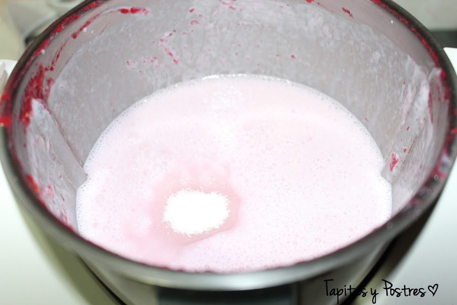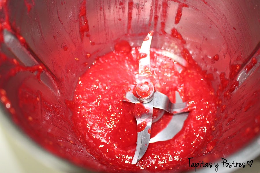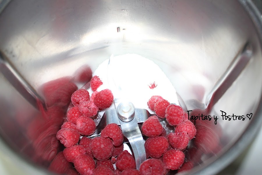 Trituramos las frambuesas con el azúcar 30 segundos a velocidad 8-10