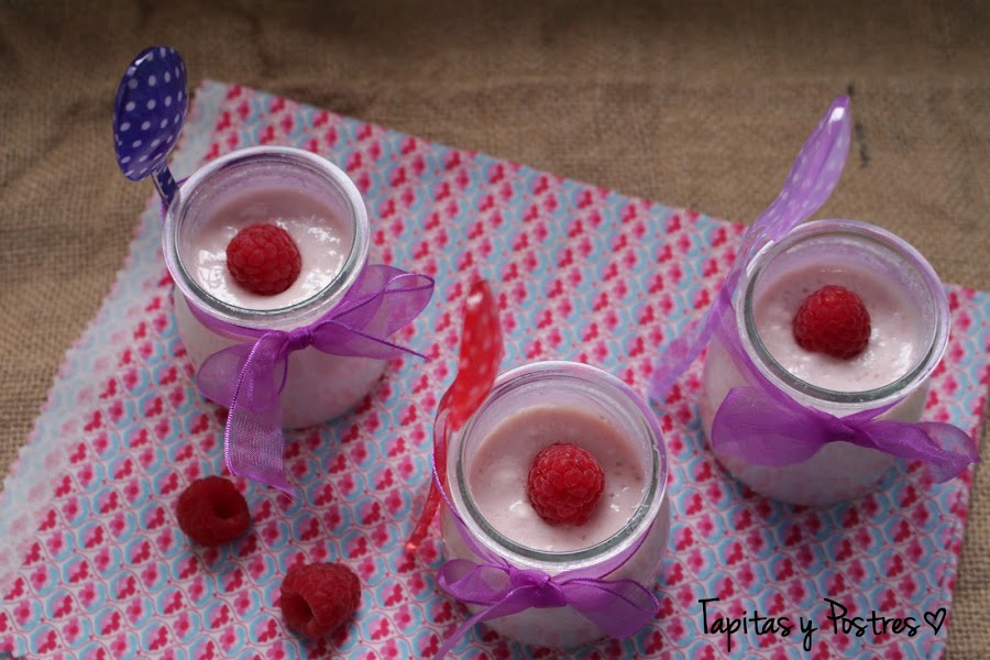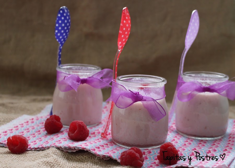 Yo he hecho esta vez yogur de frambuesas naturales, con un toque de leche condensada para suavizar la acidez de las frambuesas y me han quedado unos yogures muy cremosos y suaves.