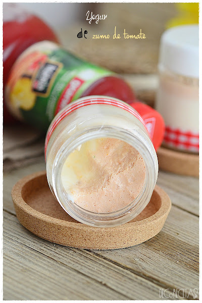 A la manera tradicional de hacer los yogures (entrada aquí) añadí una especie de mermelada de tomate que realice con este zumo