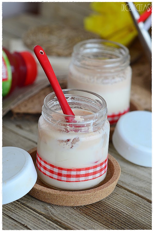 Esta mermelada la añadir junto con la leche entera la leche en polvo y el yogur natural. No añadí azúcar alguna ya que con la mermelada tenía suficiente