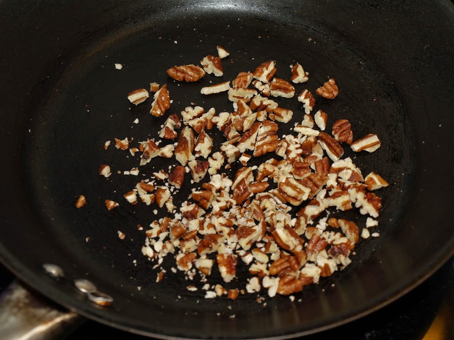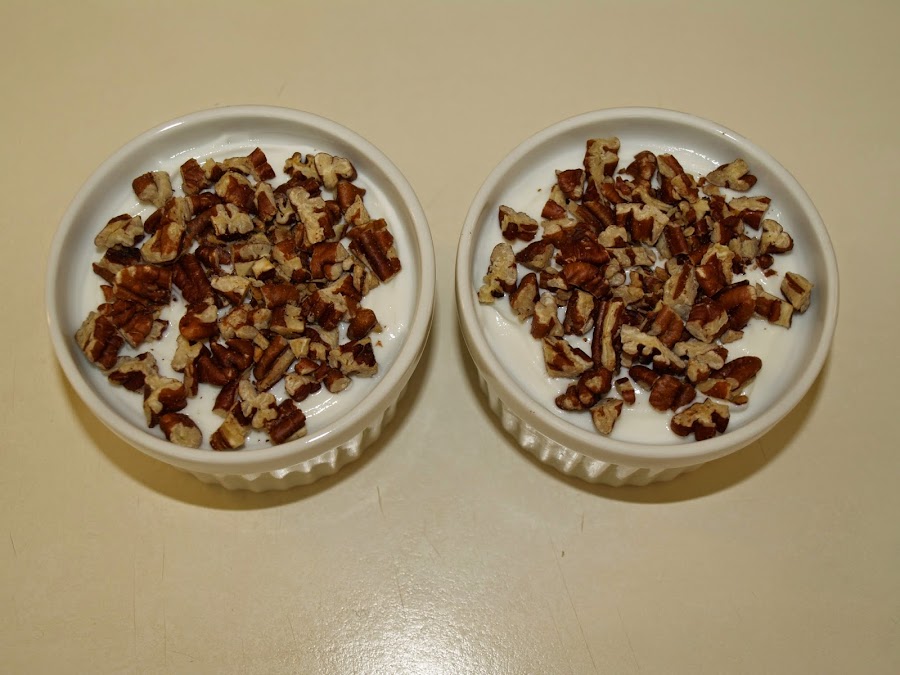 - Este postre tan sencillo solo requiere tostar ligeramente las nueces, previamente troceadas, en una sartén. Después solo tenemos que preparar los vasos.