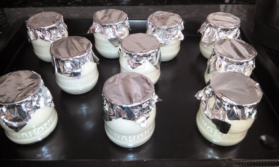 Metemos los tarritos con el horno encendido a 50 grados durante 10 minutos. Después apagamos el horno y los dejamos dentro 8 horas SIN ABRIR EL HORNO.