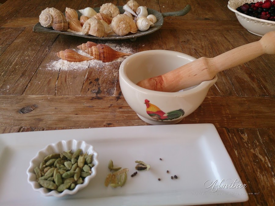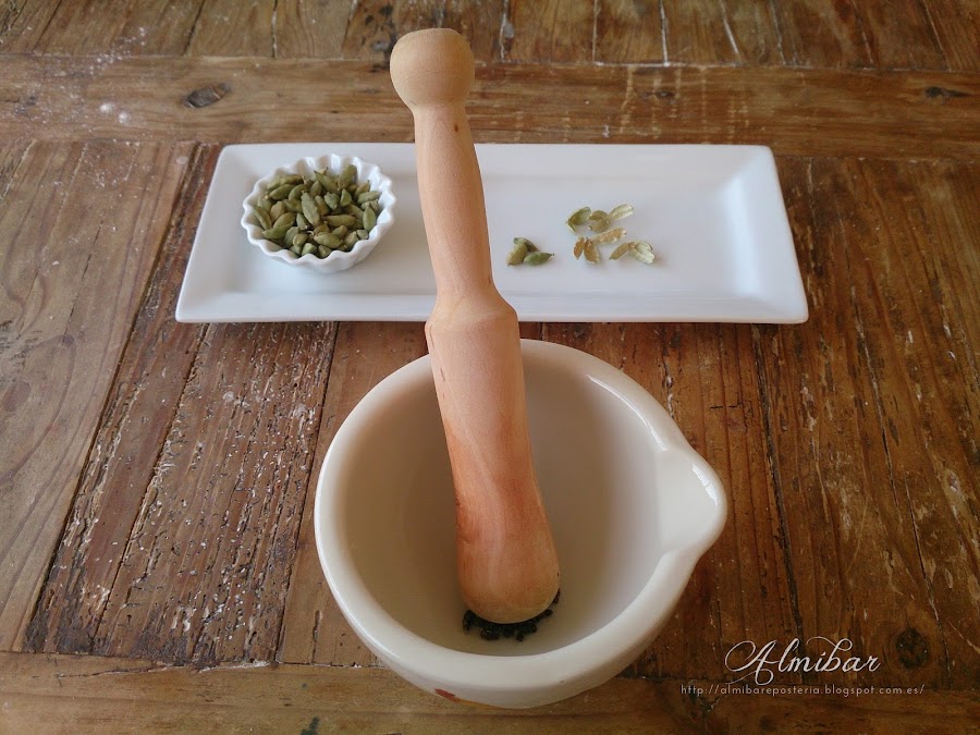 ...trituras hasta conseguir un polvo de azúcar moreno y cardamomo...