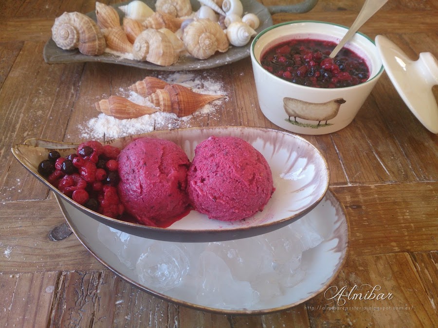 ...naturalmente se puede apreciar perfectamente las semillas de las frutas del bosque en el yogur helado...