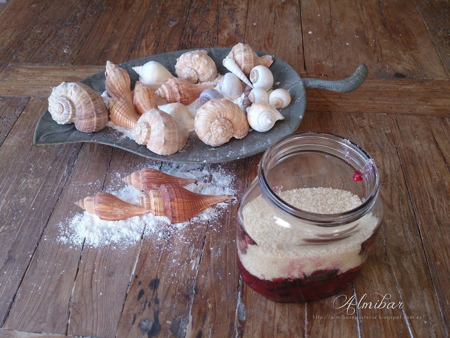 ...en un recipiente de cristal colocas una capa de azúcar moreno...