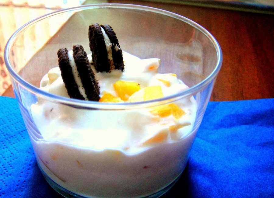 Otras veces, lo he montado por capas, primero una de galleta, luego el yogur y la fruta por encima....pero bueno como siempre os digo, eso ya al gusto del consumidor.