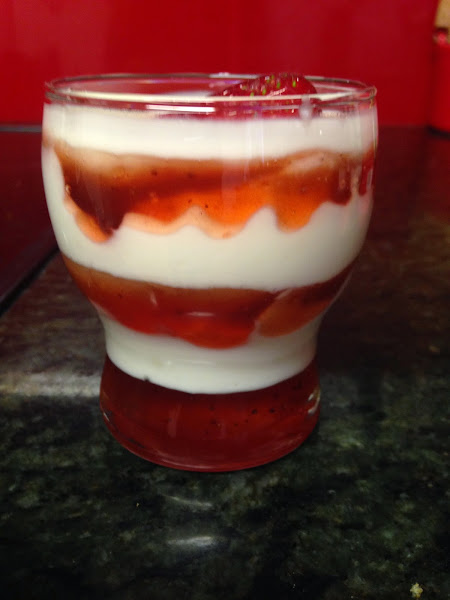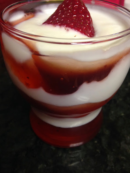 Acabamos con la ultima capa de yogur y un fresón encima.