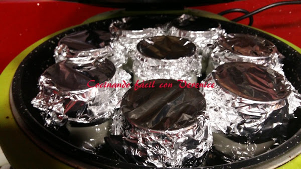 Se dejan enfriar 30, se les quita el papel aluminio y se les pone la tapadera para meterlos ya en la nevera y dejarlos 12 horas reposando y enfriando.