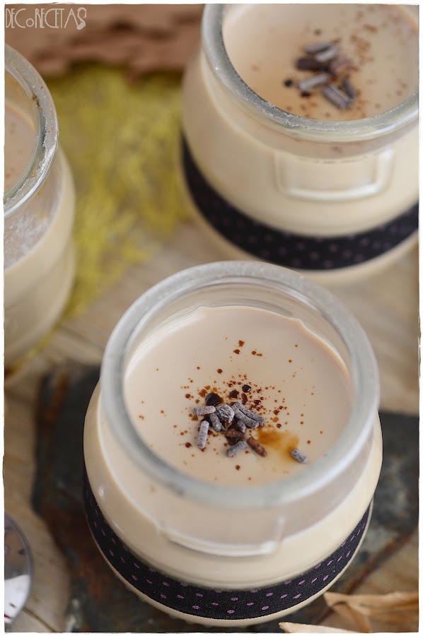 La receta de cómo los hago la tenéis aquí igual que siempre, lo único que añado 2 cucharadas de café descafeinado a la mezcla que inserto en los vasitos