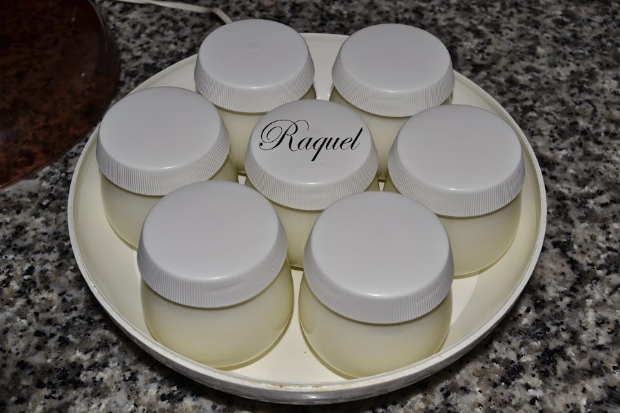 Llenamos los vasos hasta arriba,los metemos en la yogurtera y la conecto a la luz doce horas, como os dije ya una vez, yo tengo un truco le pongo un paño de cocina por encima y aun mantiene algo mas de calor y se quedan mas cuajados.