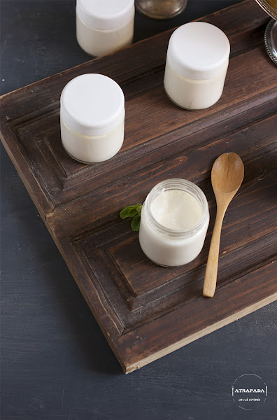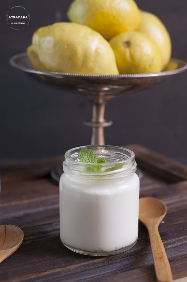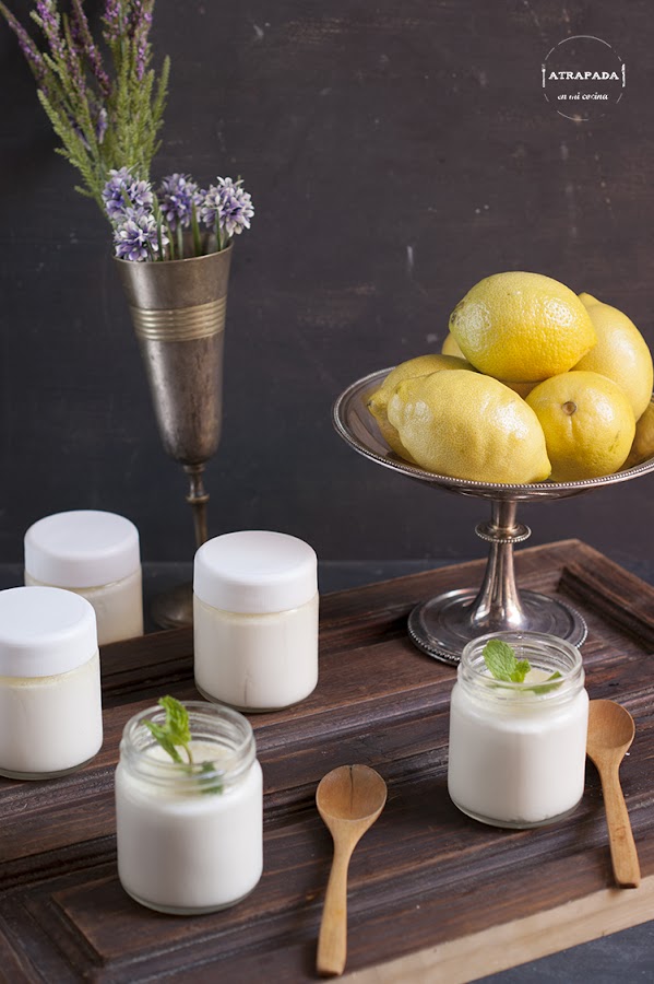 Hace ya bastante tiempo que no os ponía ninguna receta de yogures caseros, pero esta temporada me he propuesto hacer todas las semanas una tanda de yogures y así evitar tirar caducada la leche en polvo cada vez que la compro, je,je...bueno, ese es un motivo, pero otro es que los yogures caseros son un lujo, y son tan fáciles de hacer que no supone nada dedicar media hora a la semana para tener este postre tan natural. En esta ocasión he escogido uno de mis sabores preferidos, el limón. Para ello he recurrido a la esencia de limón, usando como base la receta de yogures caseros que ya os ponía en su día, aunque cambiando la leche fresca por leche semidesnatada para así evitarnos algunas calorías. Los he cuajado en la yogurtera, pero ya os enseñaba hace tiempo a prepararlos sin ella en este post.