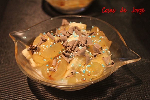 En esta ocasión, con un simple yogurt, un plátano y unas uvas feas que andaban dando vueltas por la nevera, resulto este apetitoso postre.