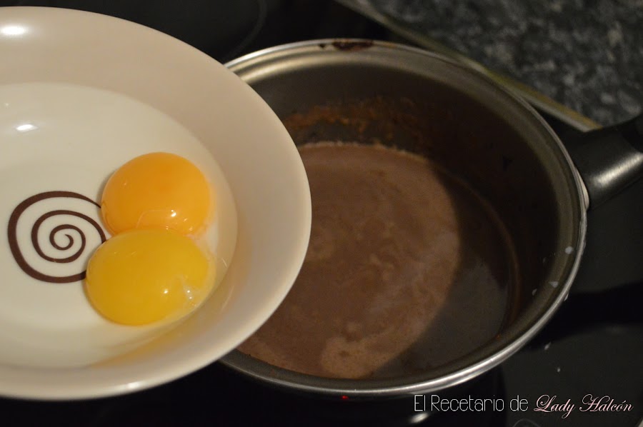 Continúa añadiendo las yemas sin parar de remover para que no se cuajen.