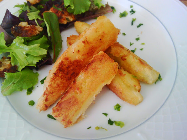 Además se puede agregar a guisos de carnes, pollos y pescados para que tome el sabor de la carne con la que se prepara, digo que se "parece a la patata" solo para que os hagáis una idea, pero la yuca cuando se cuece y se fríe, queda suave y casi cremosa por dentro y algo crujiente por fuera.