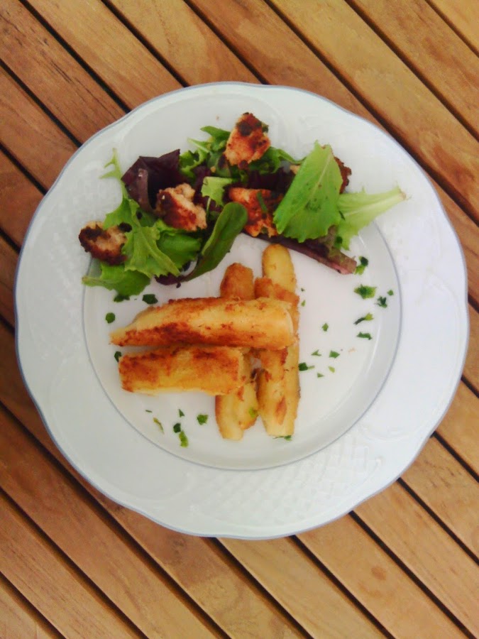 Y por que la odiábamos? aun no lo comprendo, si realmente es delicioso, se trata de un tubérculo que se utiliza como guarnición, para que me comprendáis, es algo así como la papa o patata, que para freírlo y quede exquisito, simplemente hay que cocerlo antes.