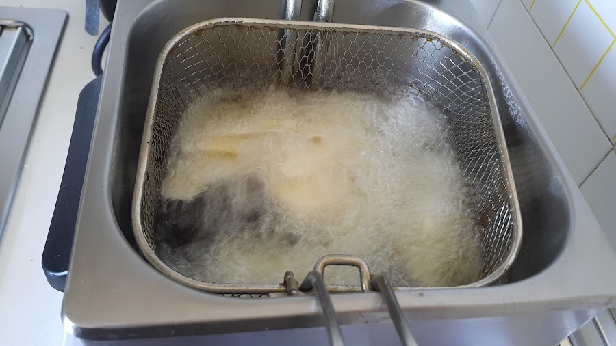 Freímos la yuca muy bien ya que no puede quedarse cruda al ser un poco tóxica.