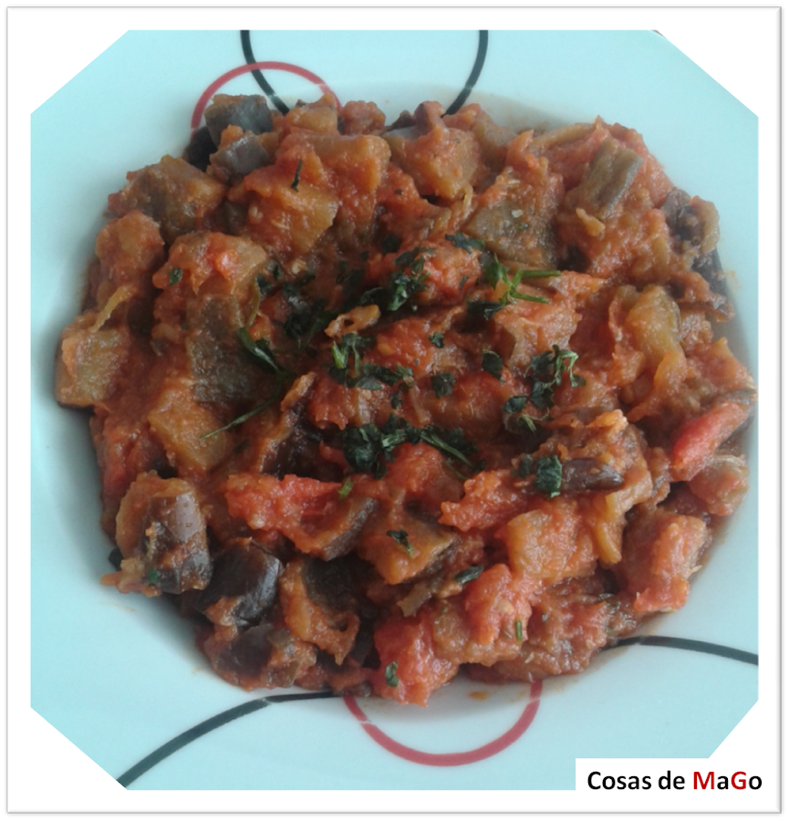El Zaalouk, al parecer, también se llama caviar de berenjenas y, si quieres, puedes añadirle unas aceitunas negras.
