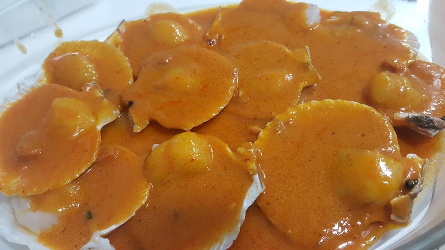 El pasado sábado las compré y en la pescadería ya me dieron muy limpias. En casa, las lavé varias veces con agua para quitarles la arena. Si no os las dan limpias en la pescadería, pincha → limpiar zamburiñas y te llevará a un enlace de Canal Cocina, en donde explican cómo limpiarlas.