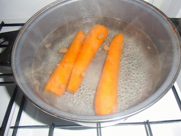 SalPelamos las zanahorias y las cocemos en abundante agua con sal hasta que estén tiernas, no demasiado blandas.