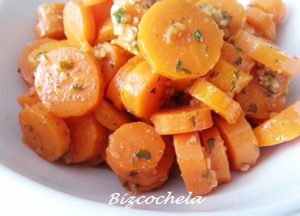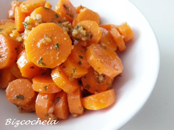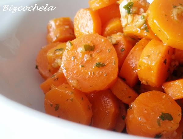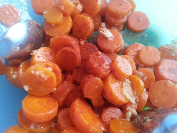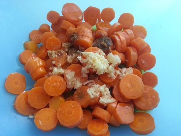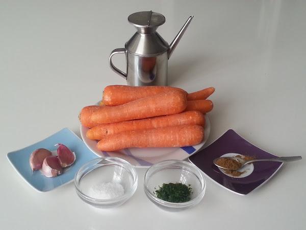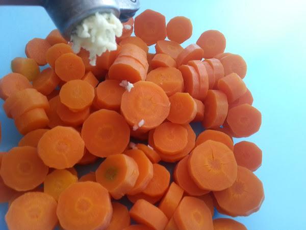 5. - Y en un bol, echamos las zanahorias troceadas, junto con el ajo, el comino y el perejil picados.