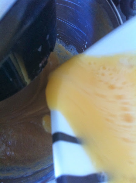 Por un lado batimos la mantequilla con el azúcar hasta obtener una crema,y por el otro,batimos los huevos y el almíbar agregandolos poco a poco a la crema de la mantequilla;una vez integrado todo,vamos añadiendo los ingredientes secos.