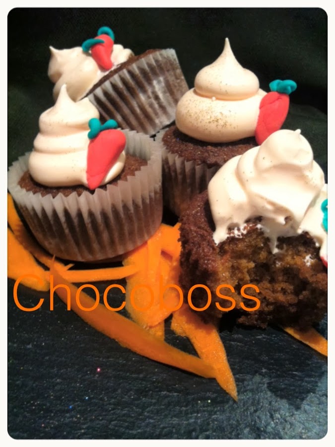 Vale ya tengo claro qué voy a cocinar con las zanahorias,pero con qué se suele servir este postre???con crema de queso,pero no tenía así que no era una opción...pues con merengue italiano de mandarina!!!! Una mezcla un poco peculiar,podréis pensar,yo también fui un poco escéptico,pero me dije "vamos las dos comparten color·" así que me animé a hacerlas,de lo que no me arrepiento en absoluto!!!Realmente deliciosos!!!!Tuve que rehacer la receta,porque la que yo tenía era de tarta,que por lo visto estaba deliciosa,me la pasaron pero nunca me animé a hacerla,así que calcule los ingredientes para hacer una versión en cupcake,que lo que no quería es que me salieran doscientos mil!!!