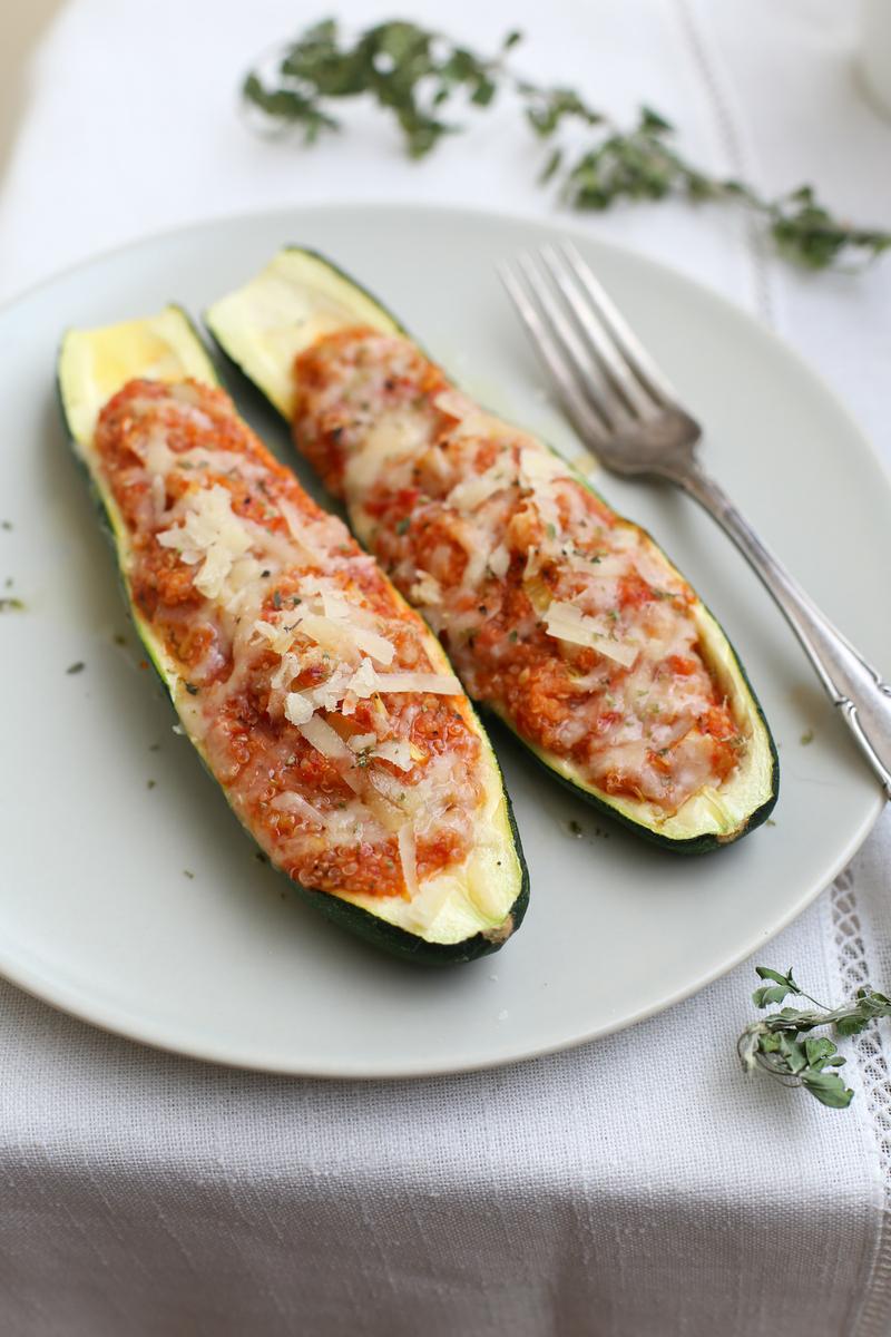 Dale una vuelta a los clásicos zapallitos italianos (calabacines) rellenos y agrégale una deliciosa mezcla de quinoa atomatada. Un plato vegetariano súper sabroso que le gustará a toda la familia.