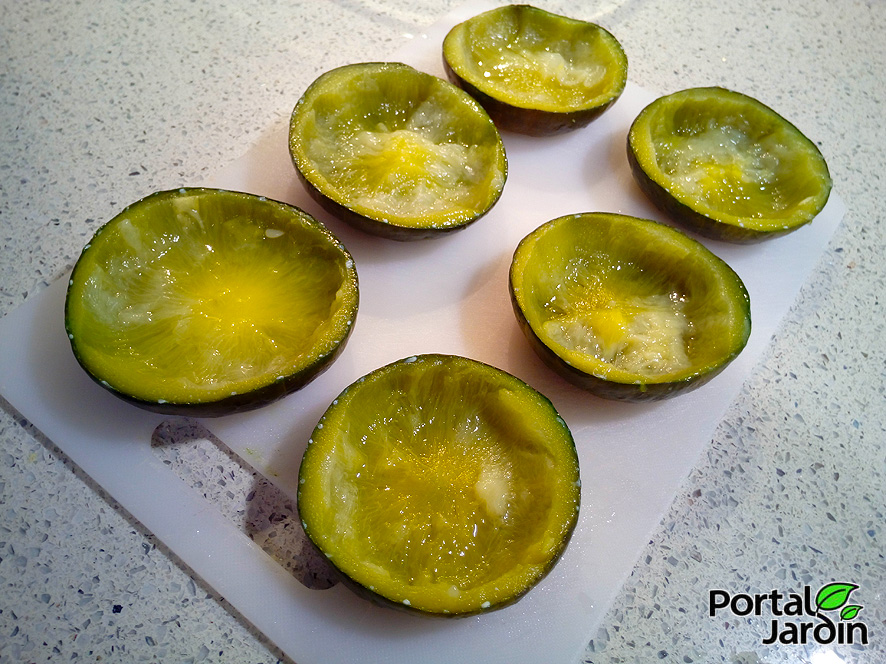 Los damos vuelta boca abajo para que escurra el líquido y dejamos la pulpa también escurriendo en un colador.