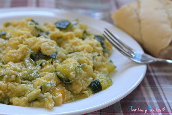 Y el zarangollo murciano o revuelto de calabacin y cebolla está listo.