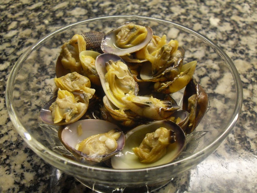 Poner las almejas en un bol con agua para que suelten la arenilla.