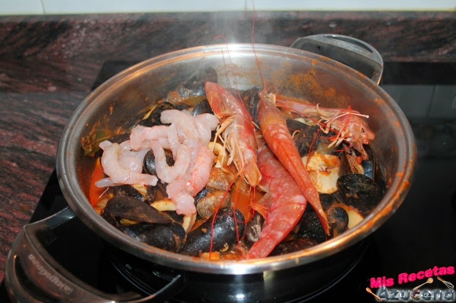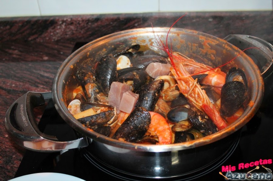 Hoy os quiero dejar esta receta que lleva de todo un poco, pescado, marisco, moluscos, es bastante completita y se ve un poco aparatosa con tanto ingrediente pero luego no es complicada. En este plato hay para todos los gustos, a ver que os gusta a vosotr@s.