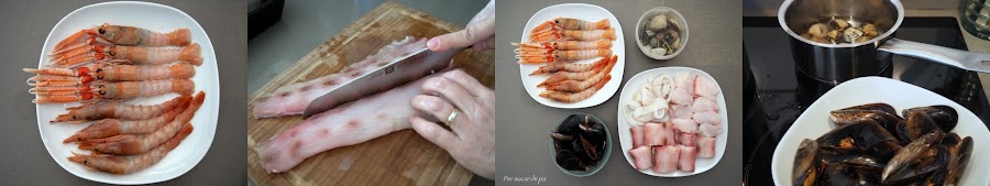 Podéis prepararlo con antelación, encontraréis la receta en esta entrada del blog: Caldo de pescado (hacer clic aquí). También podéis mirar esta otra elaboración: Arroz caldoso de escórpora (hacer clic aquí).