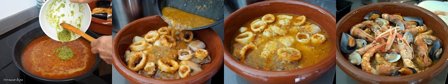 Hacer lo mismo con los calamares, retirar y reservar aparte.