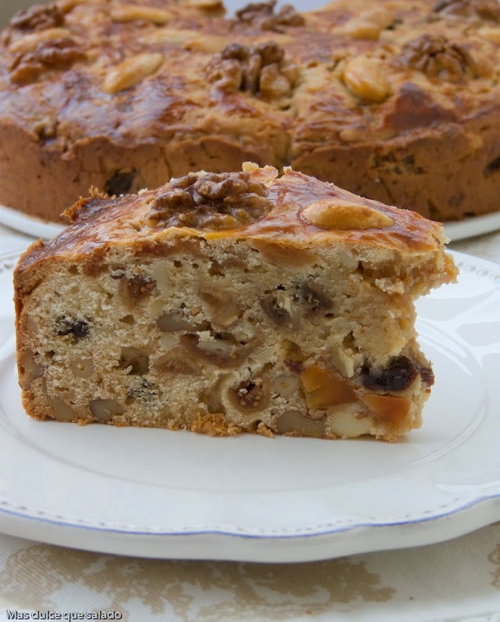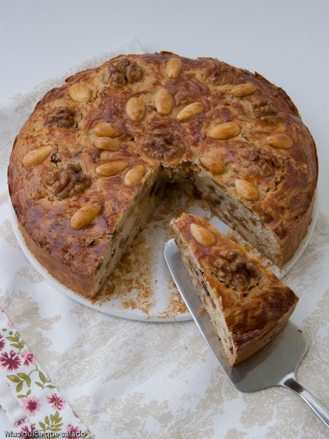 He variado tan solo dos ingredientes de la receta. La cidra confitada que no la encontré ( tampoco la busque mucho la verdad...) que en principio pensé en cambiar por naranja, pero al final le puse papaya desecada que era lo que tenían en el supermercado el día que fui a por los ingredientes. Con la cidra o la naranja no sé cómo estará , pero la papaya no le ha ido nada mal.