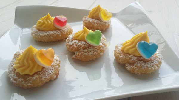 Aprovechando algunos de los ingredientes que venían en la Degustabox del último mes, le di un toque especial en la decoración a estos Zeppole, que han quedado preciosos con estas gominolas en forma de corazón de Haribo Toppings.