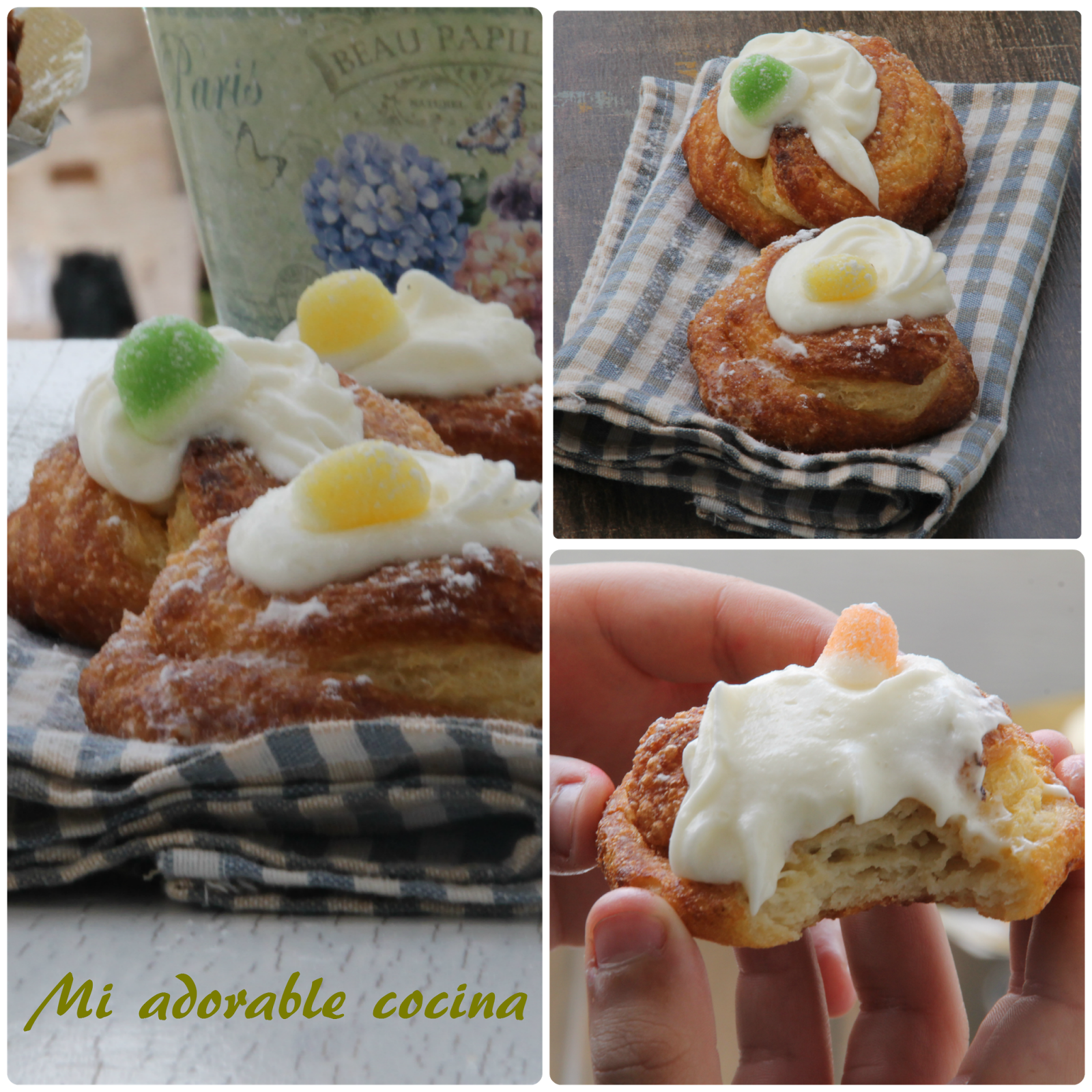 Hoy es el último desafío de la cocina de esta temporada , ya hasta septiembre. A mi me ha tocado Lidia (Mis platos favoritos) que elegío hacer un rico postre Napolitano llamado ZEPOLE DI SAN GIUSEPPE (rosquillas de San José) Son unas rosquillas frítas y luego horneadas rellenas de crema y se toman el día de San José.