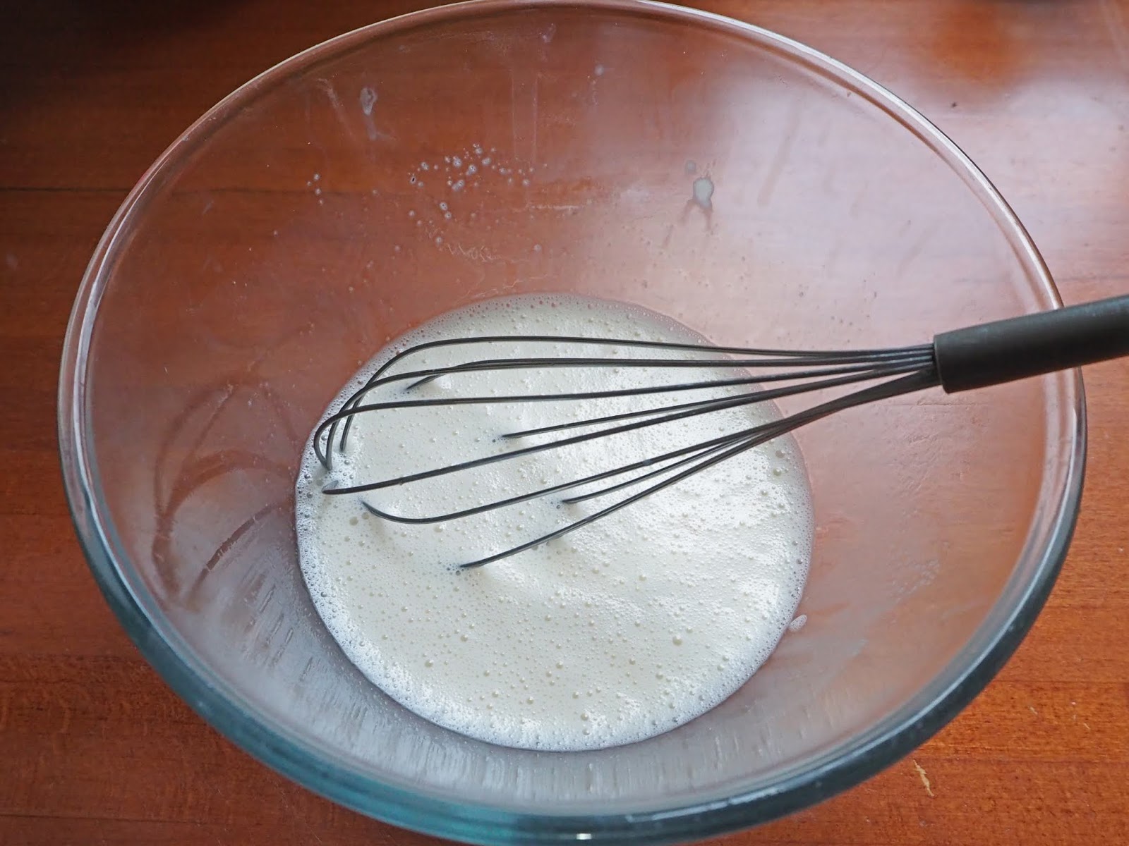 - En un bol ponemos la leche templada, la sal, el azúcar o edulcorante y la levadura y batimos hasta que la levadura esté totalmente diluida.