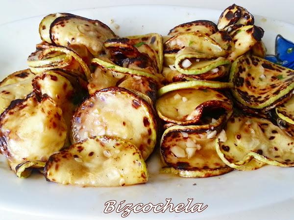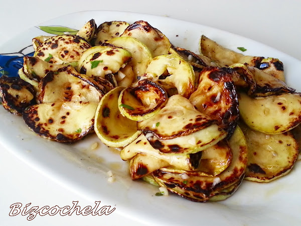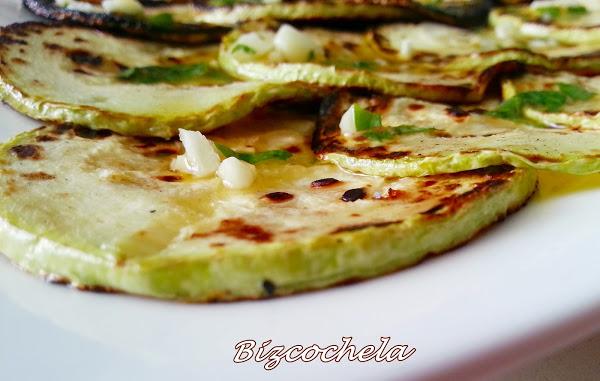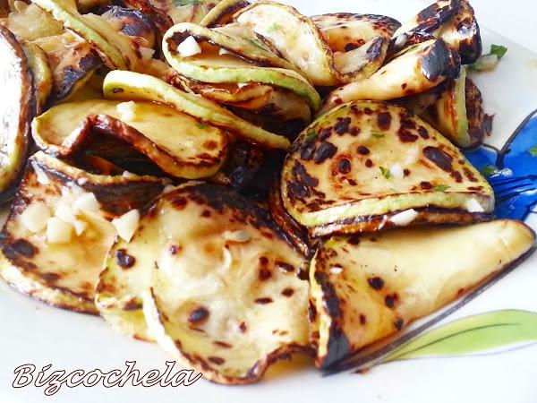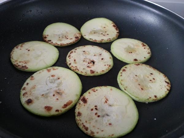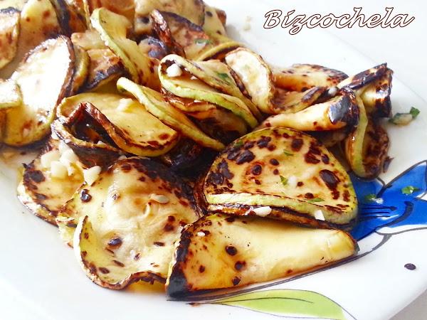 O ponéis unas rodajas de calabacín y le echáis un poco del aliño por encima.