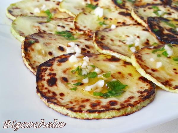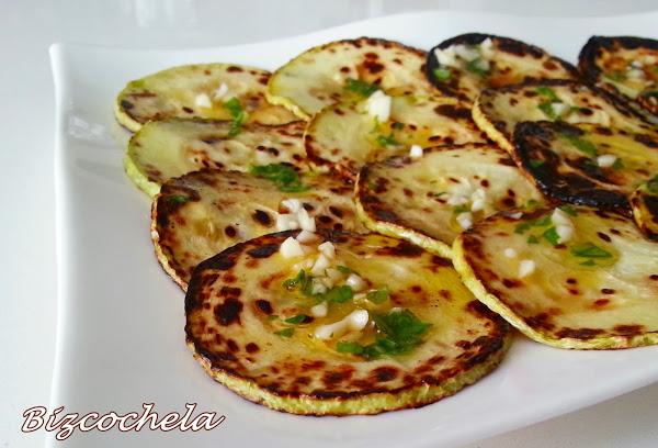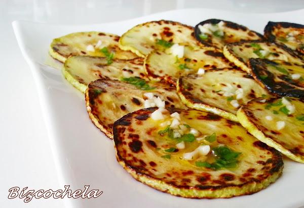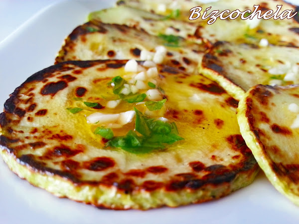 Originalmente las rodajas de calabacín se fríen en freidora o abundante aceite, pero yo prefiero hacerlos a la plancha, que es más sano y ligero.