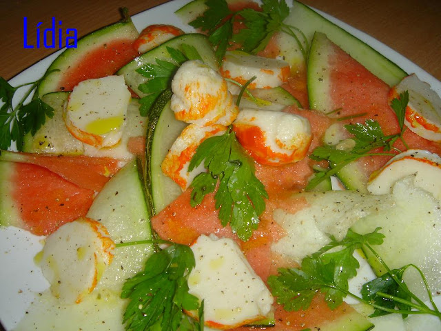 Pelamos y cortamos el melón, lo pasamos por la licuadora y lo mezclamos con zumo de naranja. Cuanto más melón, más dulce estará. Si queremos mitigar la acidez de la naranja, echaremos más azúcar.