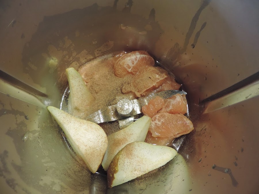 Pelar el pomelo y le quitamos bien la parte blanca, lo ponemos todo en el vaso del thermomix.